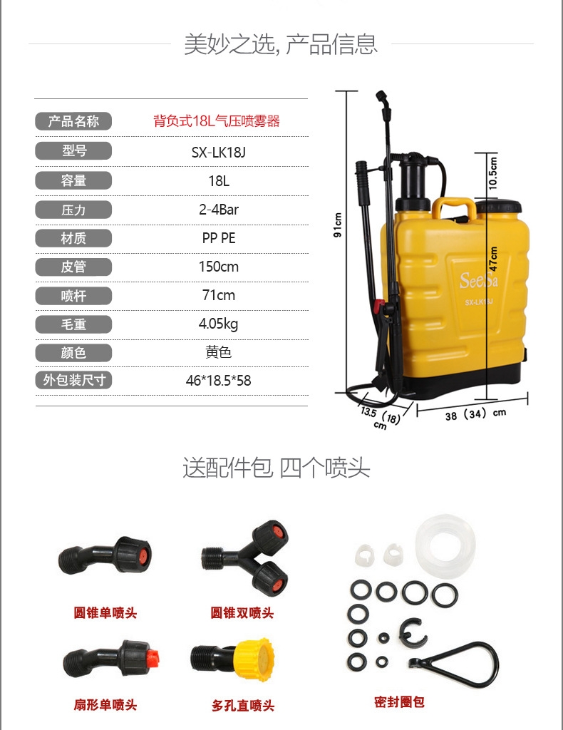 SX-LK18G 18L背负式手动喷雾器