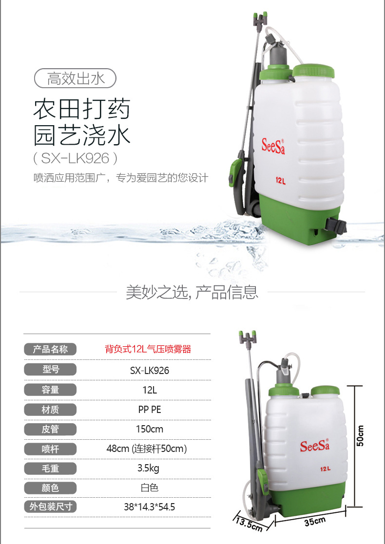 SX-LK926 12L背负式手动喷雾器