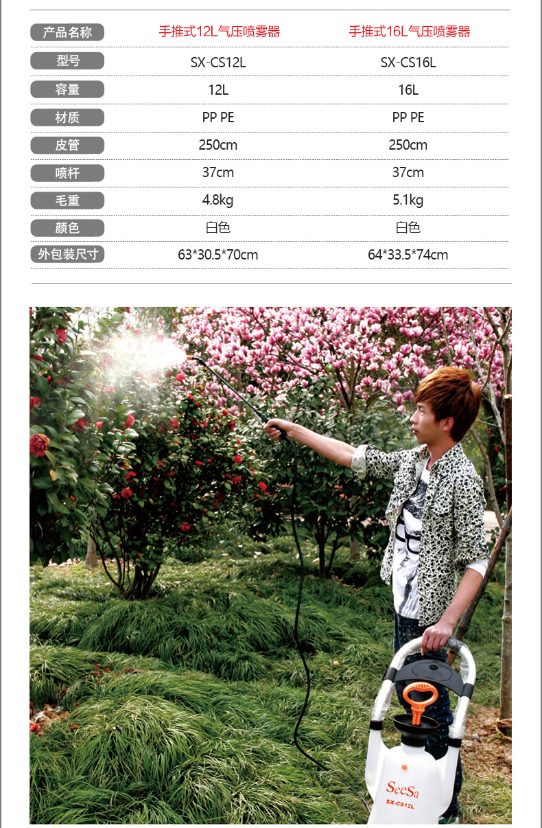 | 货号 | SX-CS16L | 类型 | 喷雾器 |