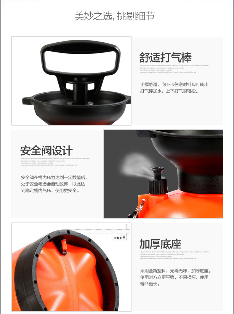| 动力类型 | 手动 | 适用对象 | 蔬菜,草坪,路旁树篱,果树,茶树,花卉 空气治理 工业洗眼器 |